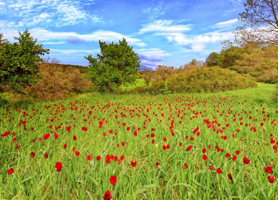 Grown on the pastures around the Tepebaşı and Avtepe villages, the deep red flower blossoms can be seen in March and April.